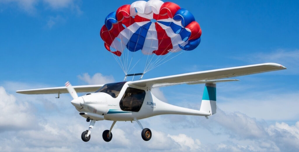 The Alpha Trainer is a top pick for the safest aircraft in the training industry. The glide ratio for the plane without engine power is 15 miles for every 1 mile above the ground. Also, a BPRS parachute is installed for the entire plane, creating a controlled descent in the event of an emergency.